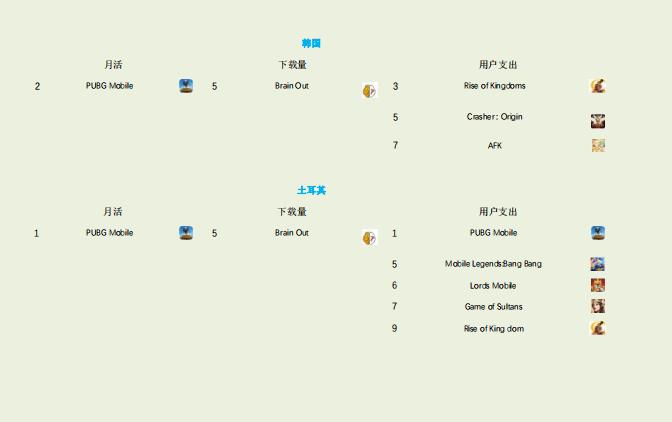 2020 年進入韓國、土耳其市場 MAU、