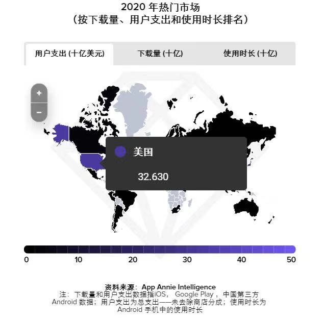整體上,2020 年,全球移動 App 的下載量增長并沒有我們想象得那么多,同比增長 7%,達到 2180 億次,但是在用戶支出上,算是回報豐厚的一年,同比增長 20%,達到1430 億美元,數據創(chuàng)下新高。
